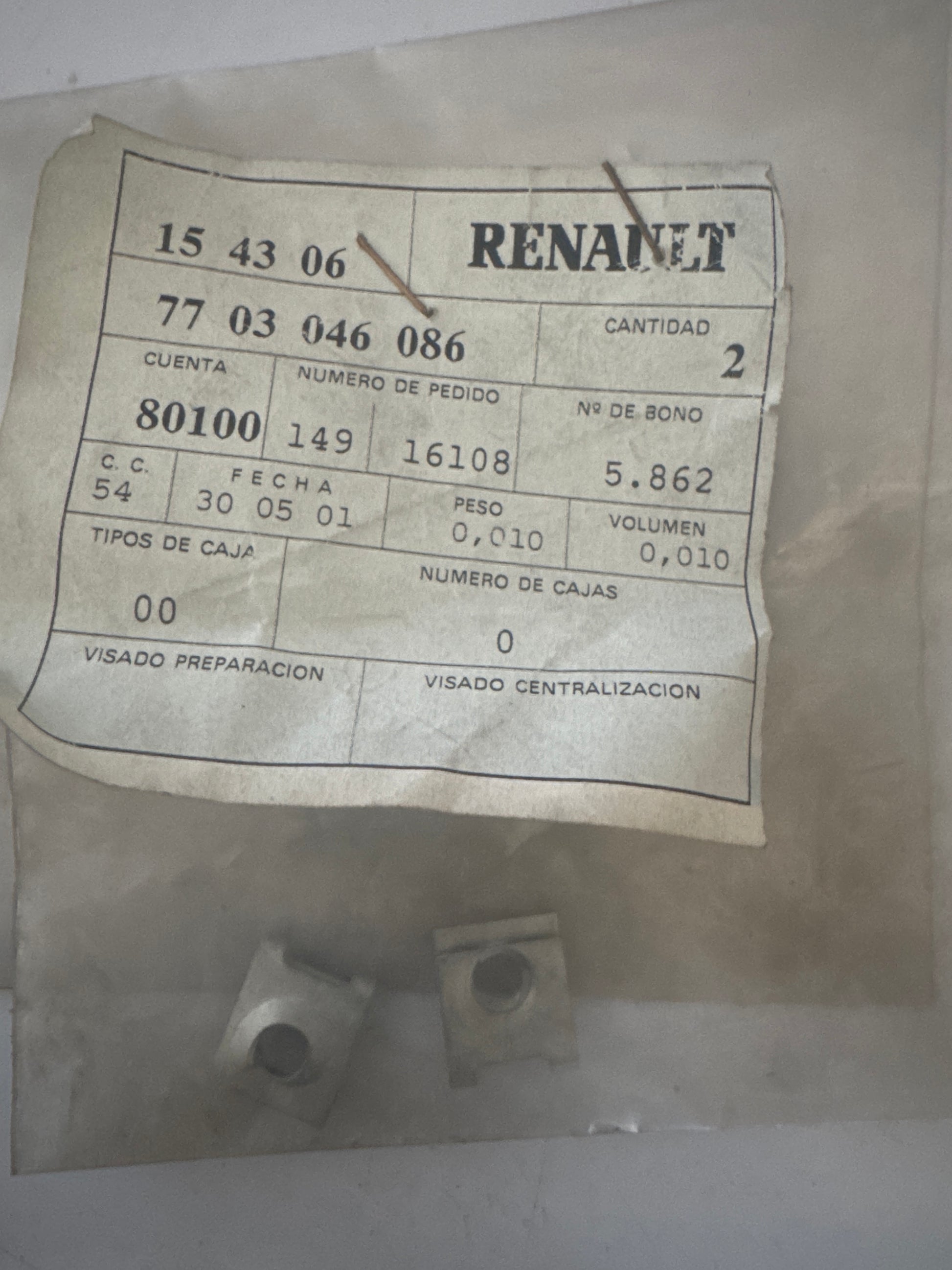 7703046086, TUERCA CHAPA, Renault